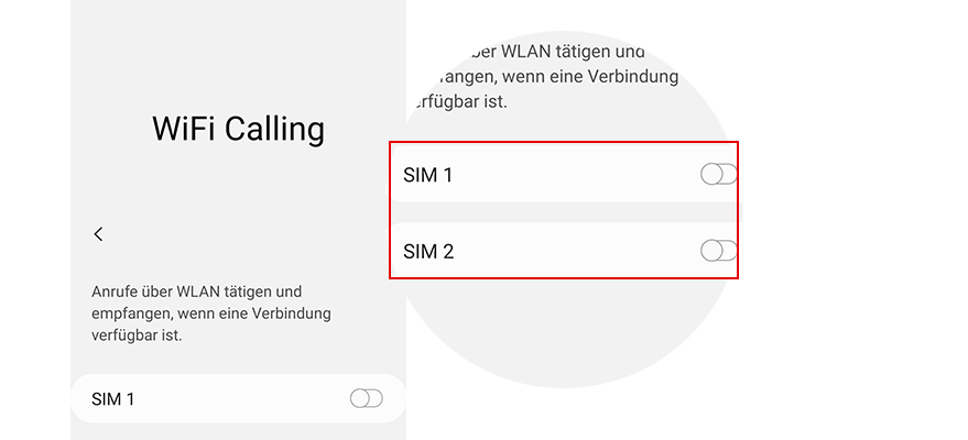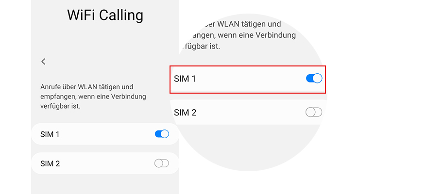 - Schalt WiFi Calling über den Schieberegler für die gewünschte SIM-Karte ein.