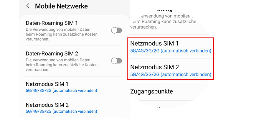 - Wähl Netzmodus. Gut zu wissen: Nutzt Du mehrere SIM-Karten, siehst Du Netzmodus SIM 1 und Netzmodus SIM 2.