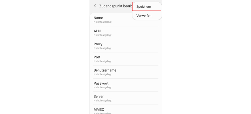 Tipp auf Speichern, um den Zugangspunkt zu speichern.