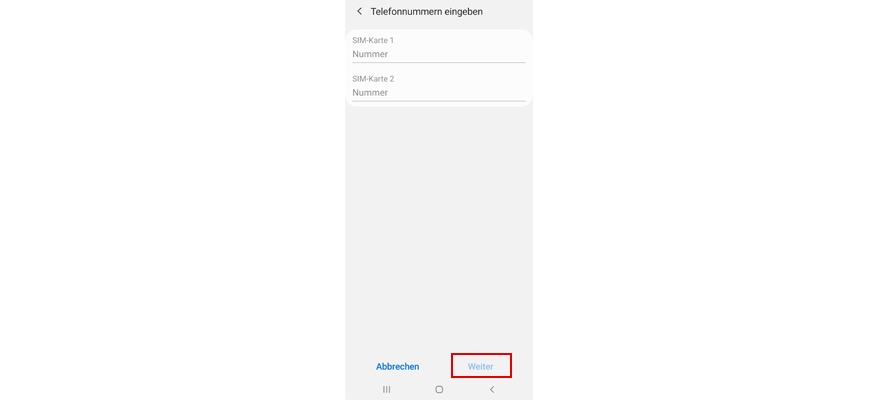 Gib die Telefonnummern zu den SIM-Karten ein, falls diese nicht automatisch erkannt wurden.