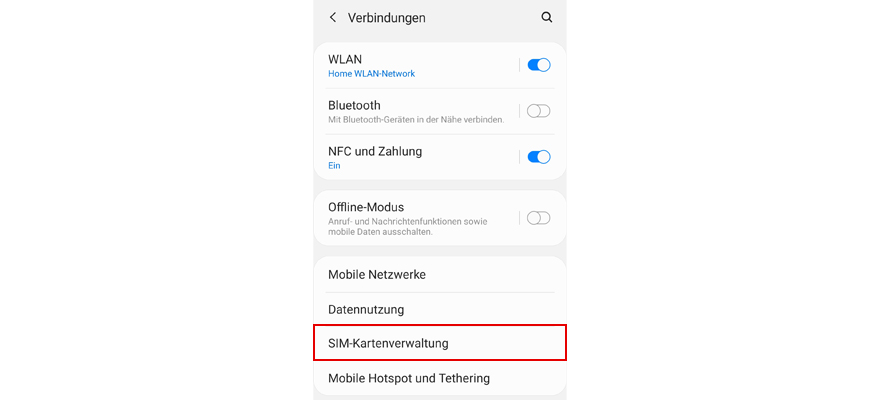 Wähl SIM-Kartenverwaltung.