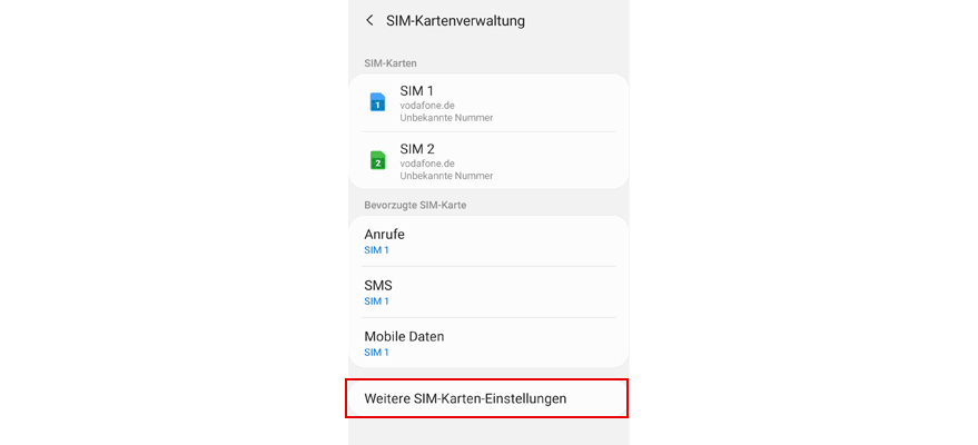 Unter Bevorzugte SIM-Karten wähl die SIM-Karte für Anrufe, SMS und Mobile Daten aus.