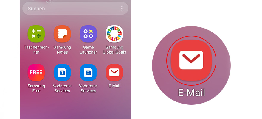 - Öffne den Galaxy Store. Such über die Lupe oben rechts nach Samsung Email. Lad die App Samsung Email herunter.