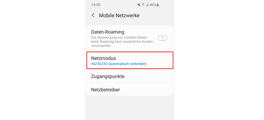 Je nach Aufenthaltsort sind unterschiedliche Netzwerktypen verfügbar. Stell den schnellsten Netzwerktypen ein, damit Dein Handy immer das Netz mit der schnellsten Daten-Geschwindigkeit und dem besten Empfang findet.