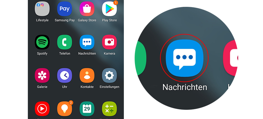 Öffne den Galaxy Store. Such über die Lupe oben rechts nach Samsung Email.
