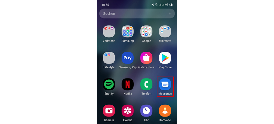Öffne den Galaxy Store. Such über die Lupe oben rechts nach Samsung Email.