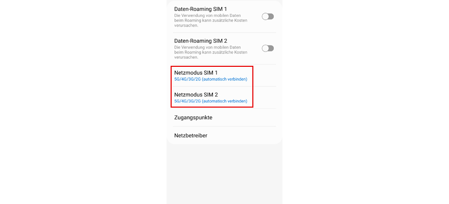 Aktivier Dual-SIM immer aktiv.