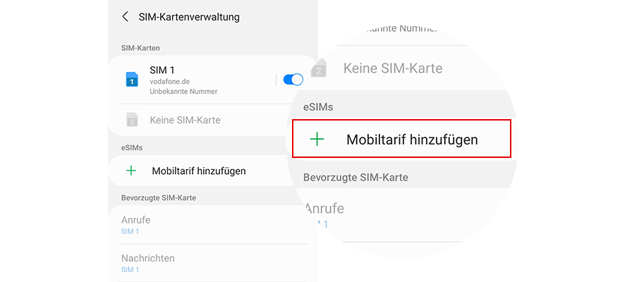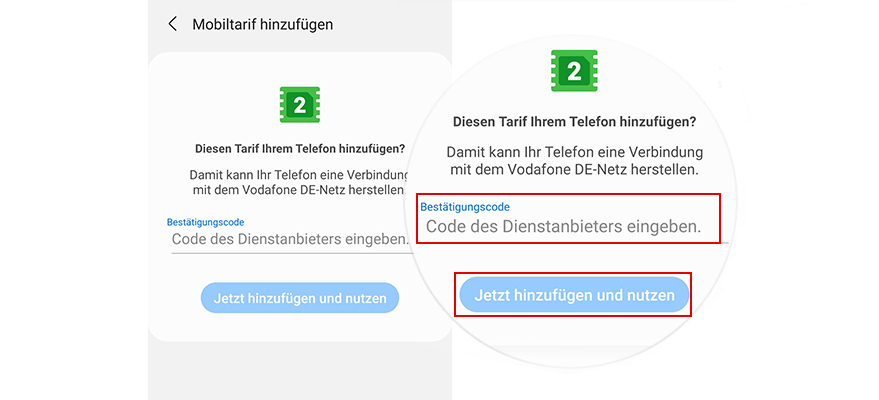Tipp auf Jetzt hinzufügen und nutzen. Der Tarif wird Deinem Telefon hinzugefügt...