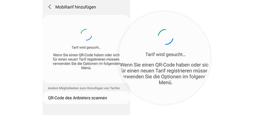 Hast Du einen QR-Code oder möchtest Dich für einen neuen Tarif registrieren, dann nutz die Optionen QR-Code des Anbieters scannen.