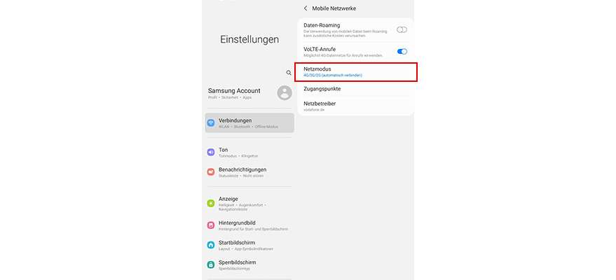 Je nach Aufenthaltsort sind unterschiedliche Optionen verfügbar. Stell den schnellsten Netzmodus ein, damit Dein Tablet immer das Netz mit der schnellsten Daten-Geschwindigkeit und dem besten Empfang findet.