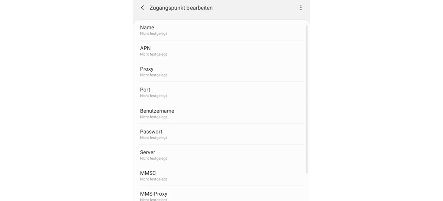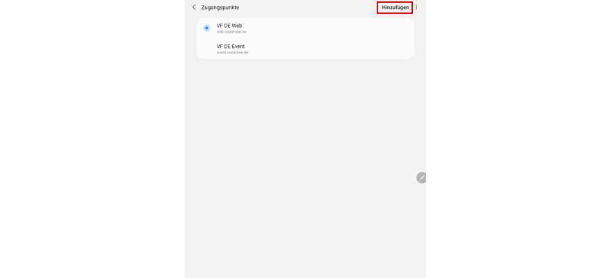 Name: Vodafone Internet APN: web.vodafone.de Proxy: Nicht festgelegt Port: Nicht festgelegt Benutzername: Nicht festgelegt Passwort: Nicht festgelegt Server: Nicht festgelegt MMSC: Nicht festgelegt MMS-Proxy: Nicht festgelegt MMS-Port: Nicht festgelegt MCC: 262 MNC: 02 Authentifizierungstyp: Ohne APN-Typ:default,supl,xcap APN-Protokoll: IPv4 APN-Roaming-Protokoll: IPv4 Übertragungsart: Nicht angegeben Typ des virtuellen Mobilfunknetzbetreibers: Keiner