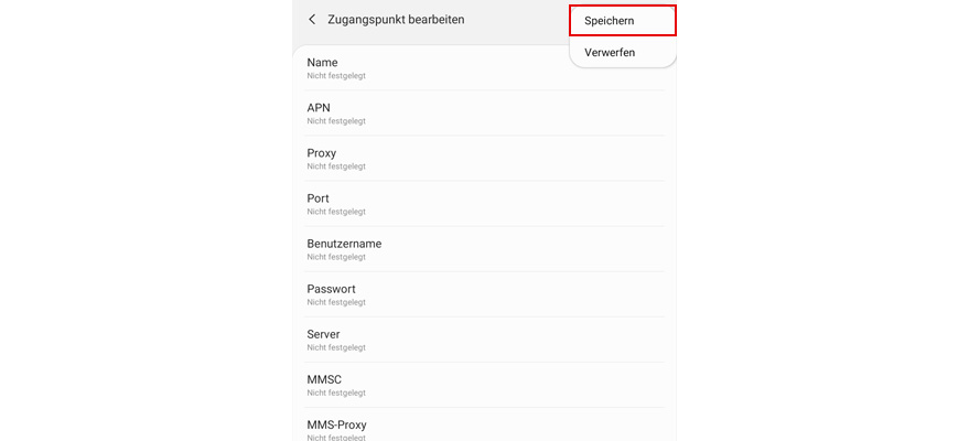 Tipp auf Speichern, um den Zugangspunkt zu speichern.