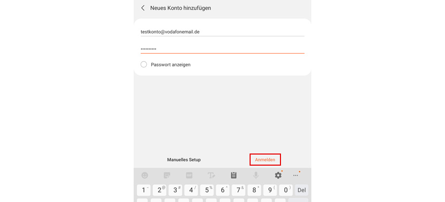 Gib das Passwort Deiner Vodafone E-Mail-Adresse ein. Und wähl dann Anmelden.