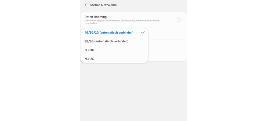 Je nach Aufenthaltsort sind unterschiedliche Netzwerktypen verfügbar. Stell den schnellsten Netzwerktypen ein, damit Dein Tablet immer das Netz mit der schnellsten Daten-Geschwindigkeit und dem besten Empfang findet.
