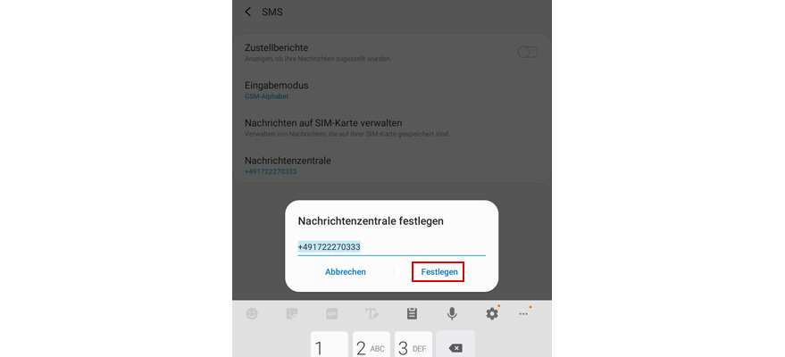 Gib +491722270333 ein. Und wähl dann Festlegen.