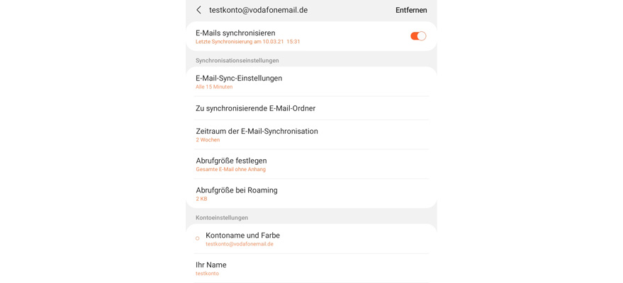 Optional: Änder bei Bedarf die Synchronisationseinstellungen über die E-Mail-Sync-Einstellungen.