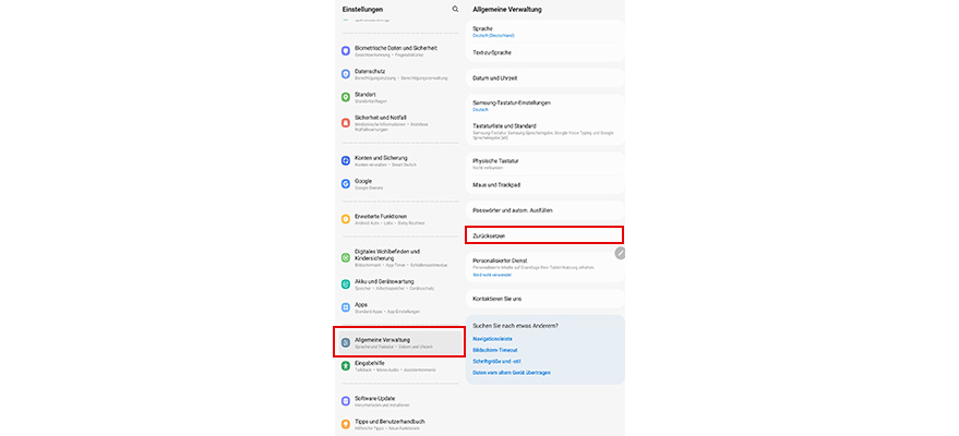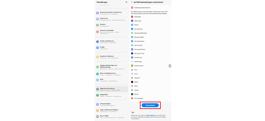 - Wähl Zurücksetzen. Gut zu wissen: Alle Daten werden aus dem Speicher gelöscht. Tipp: Sicher vorher Deine Daten, damit Dir keine Daten verloren gehen.
