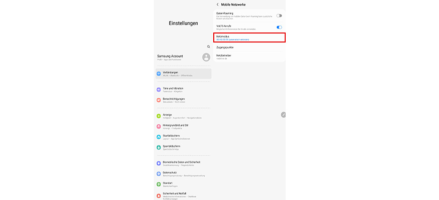 Je nach Aufenthaltsort sind unterschiedliche Optionen verfügbar. Stell den schnellsten Netzmodus ein, damit Dein Tablet immer das Netz mit der schnellsten Daten-Geschwindigkeit und dem besten Empfang findet.