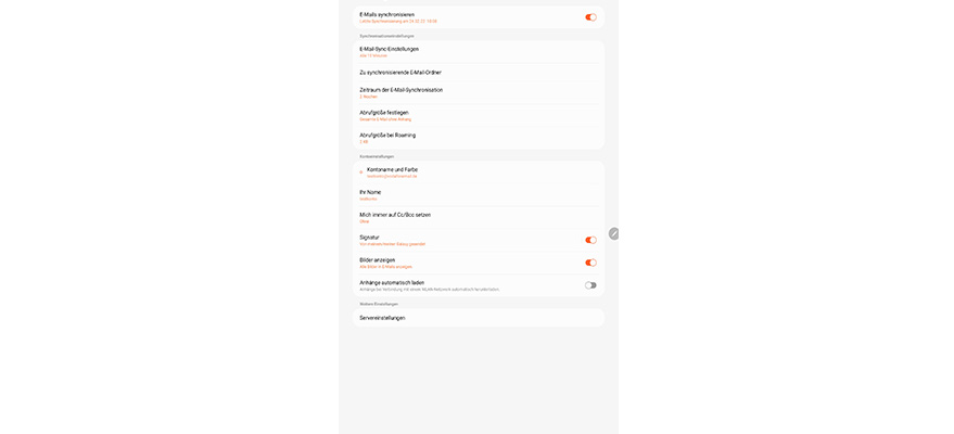 - Optional: Ändere bei Bedarf die Synchronisationseinstellungen über die E-Mail-Sync-Einstellungen.