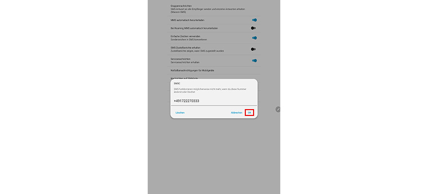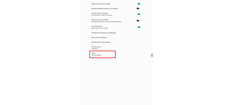 - Wähl Nachrichtenzentrale oder SMSC aus.