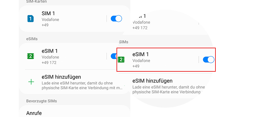 - Wähl eSIM 1 aus.