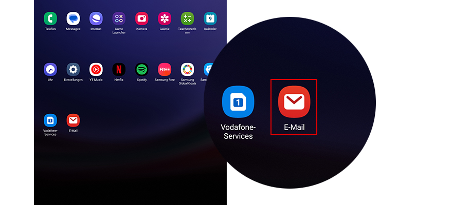 - Such über die Lupe oben rechts nach Samsung Email.