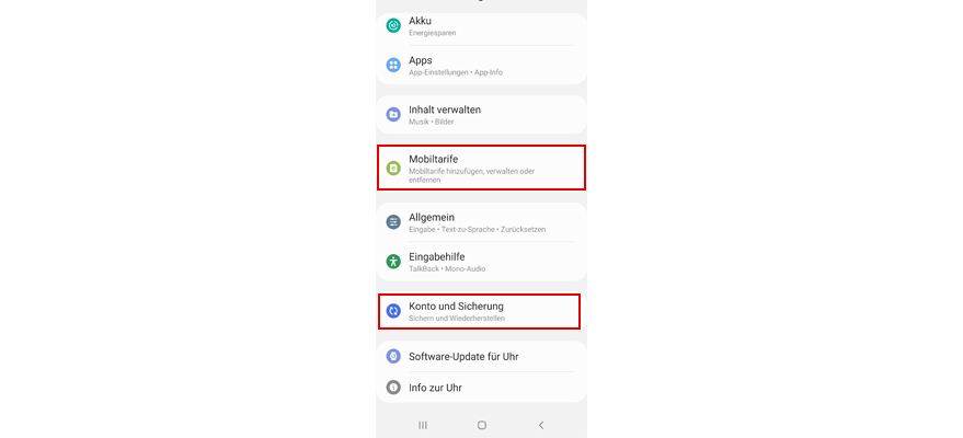 Wähl Konto und Sicherung.