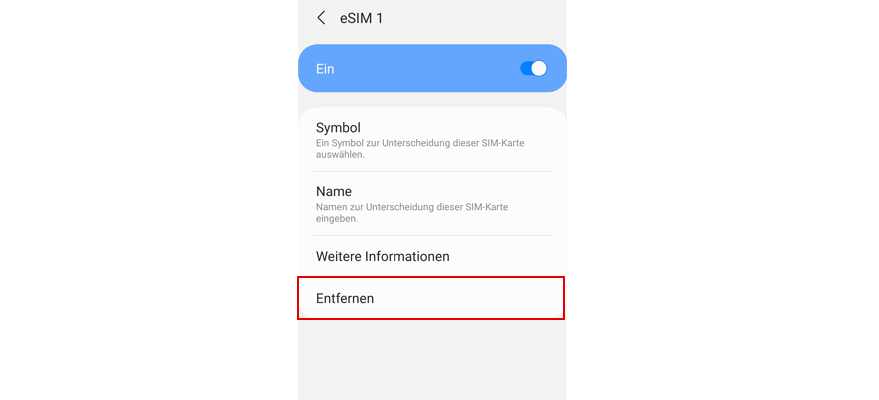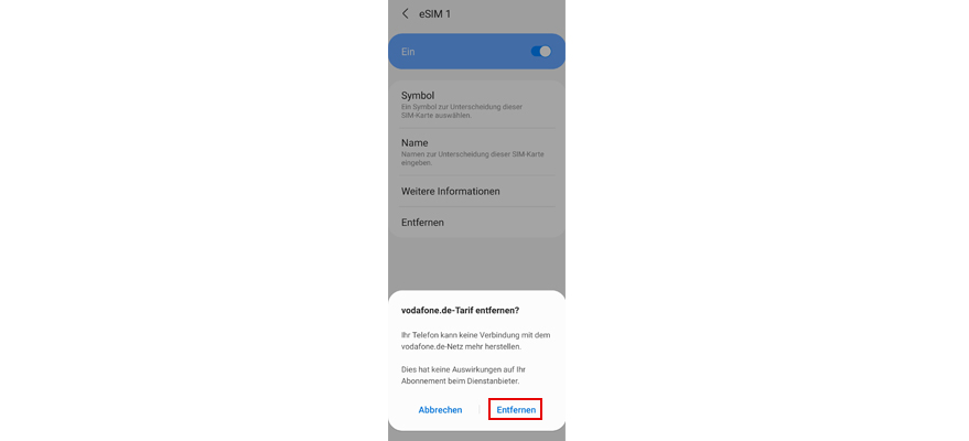 Wähl erneut Entfernen. Deine eSIM wird entfernt.