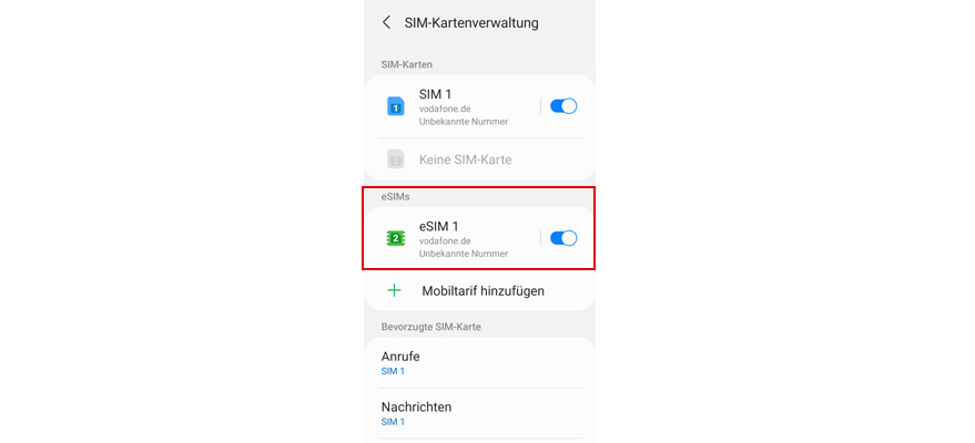 Tipp auf Bestätigen. Der Tarif wird Deinem Telefon hinzugefügt.