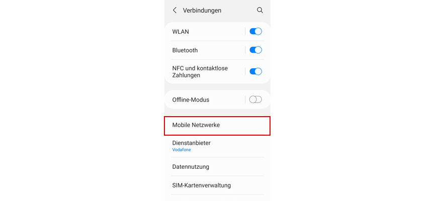 Wähl Verbindungen. Wähl dann SIM-Kartenverwaltung.
