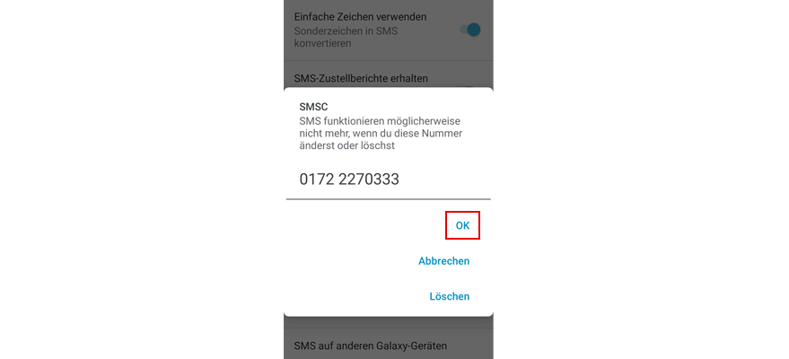 Wähl die SIM-Karte aus, wofür Du die SMSC-Nummer eingeben möchtest.