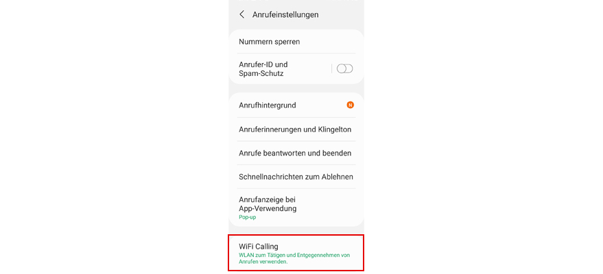 Schalt WiFi Calling über den Schieberegler für die gewünschte SIM-Karte ein.