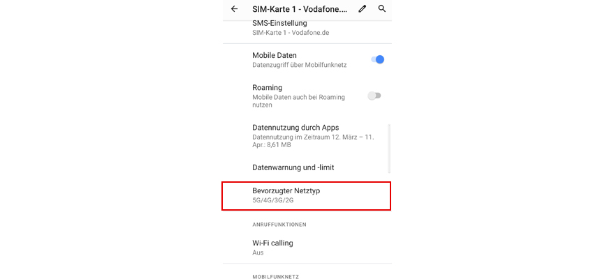 Wähl Mobilfunknetz.