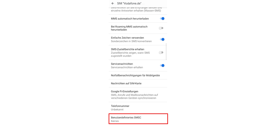 Wähl Benutzerdefiniertes SMSC.