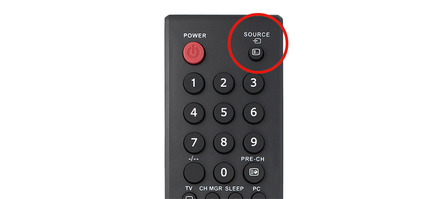 - Schalt Deinen Fernseher mit Deiner TV-Fernbedienung ein: Wähl als Signalquelle den HDMI-Kanal aus, an dem Du Deine GigaTV Home oder GigaTV Home Sound angeschlossen hast. Gut zu wissen: Auf den meisten TV-Fernbedienungen kannst Du die Signalquelle mit der Taste Source oder Input ändern. Meistens ist sie oben rechts auf der Fernbedienung.