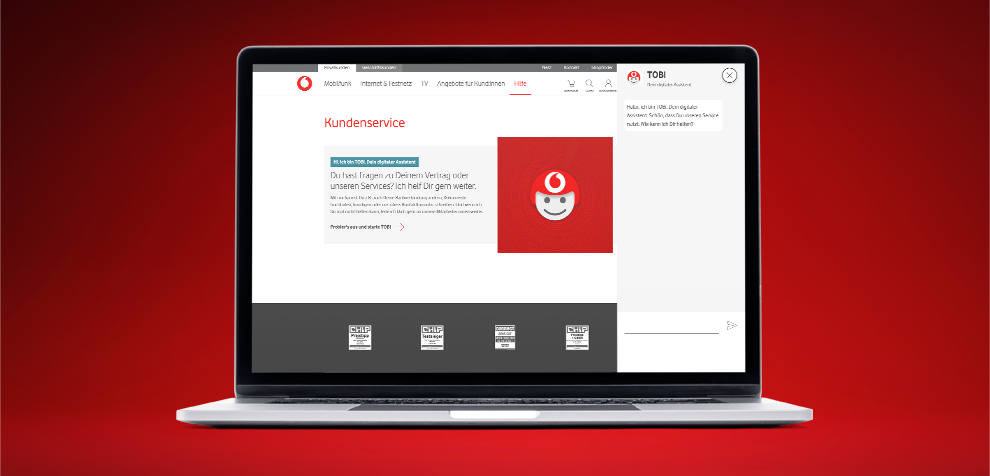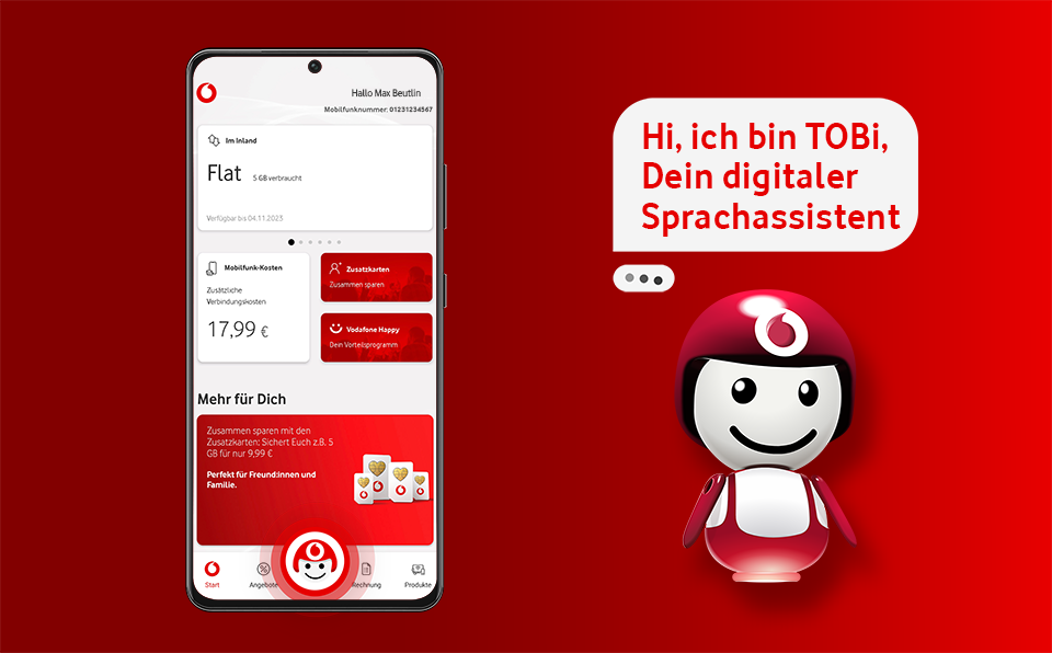 Das ist unser digitaler Assistent. Er hilft Dir rund um die Uhr. Egal, ob Du Fragen zu Deinem Handytarif, zu Internet & Festnetz oder TV hast. Und das ganz ohne Wartezeit.