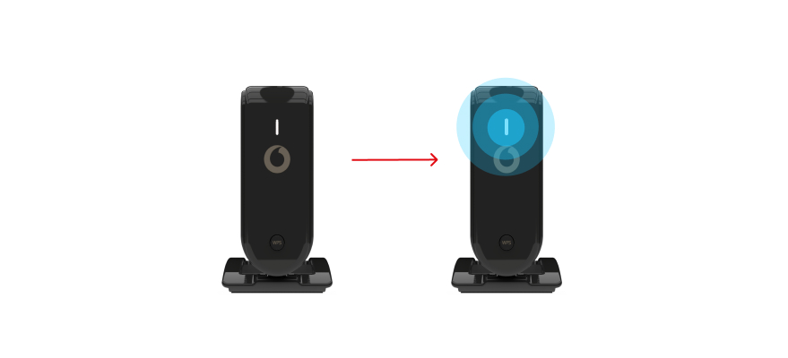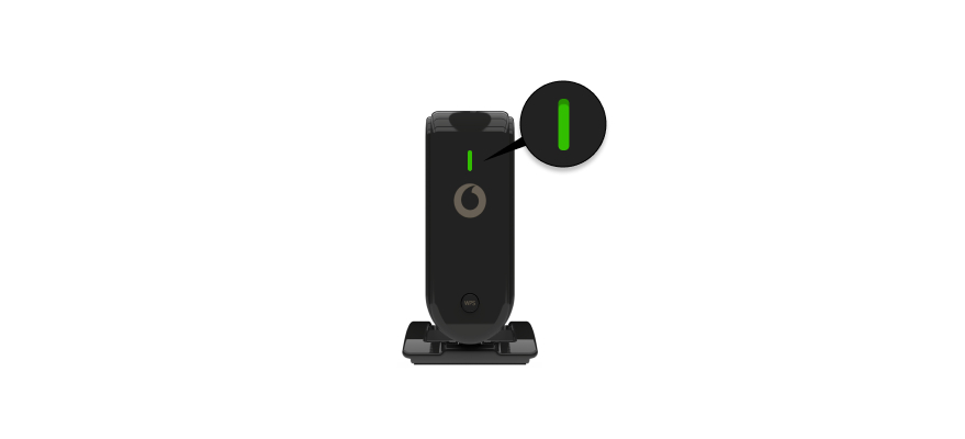 - Verbinde den SuperWLAN-Verstärker temporär per LAN-Kabel mit der Vodafone Station. Dann nimmt er die Einstellungen automatisch vor. Warte bis die LED dauerhaft grün leuchtet. Installier den SuperWLAN-Verstärker anschließend ohne LAN-Kabel am gewünschten Ort.