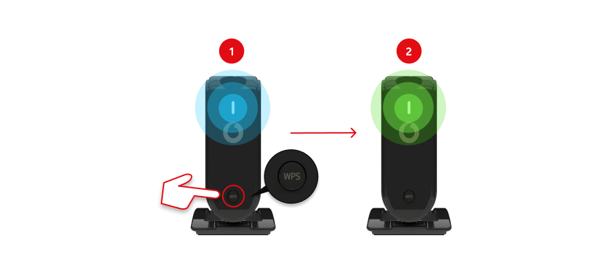 - Drück die WPS-Taste des SuperWLAN-Verstärkers kurz. Die LED blinkt dann grün.