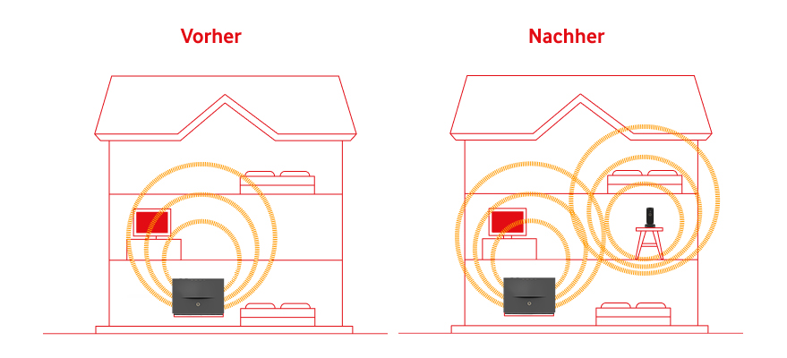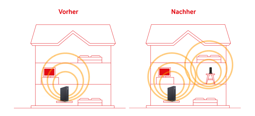 - Tipp bei mehrstöckigen Häusern: WLAN-Signale gehen besser durch Treppenhäuser als durch Böden und Decken.