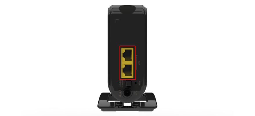 - Auf der Rückseite findest Du zwei Gigabit LAN-Anschlüsse. Damit schließt Du Geräte mit einem Kabel am Router an.
