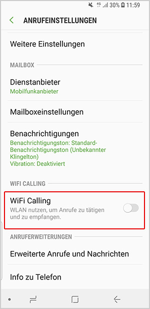 Gut zu wissen: Bei manchen Smartphones heißt es nicht WiFi Calling sondern WLAN-Anrufe.