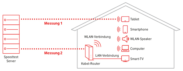 Mit dem Vodafone Speedtest Plus misst Du nicht nur die Geschwindigkeit an Deinem Gerät (z.B. Smartphone oder Computer). Sondern als Kabel-Kund:in auch die Geschwindigkeit am Router.