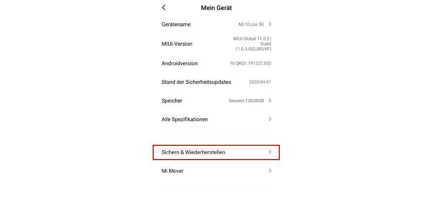 Wähl Sichern & Wiederherstellen.