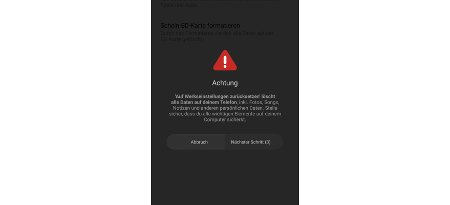 Wähl Alle Daten löschen. Hinweis: Alle Daten werden aus dem Telefonspeicher gelöscht.