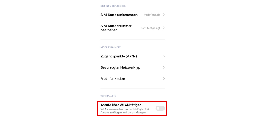 Aktivier Anrufe über WLAN tätigen.