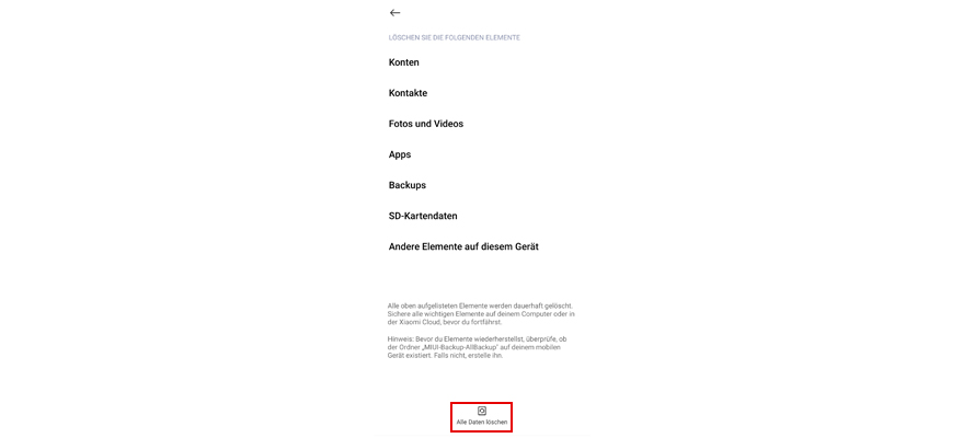 Wähl Alle Daten löschen.