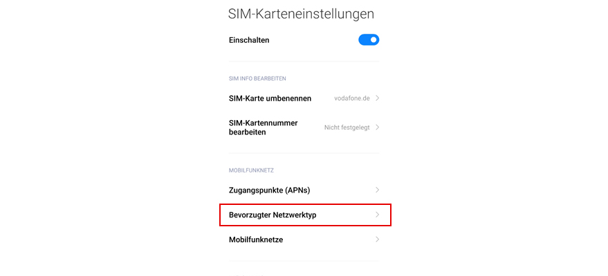 Je nach Aufenthaltsort sind unterschiedliche Netzwerktypen verfügbar. Stell den schnellsten Netzwerktypen ein, damit Dein Handy immer das Netz mit der schnellsten Daten-Geschwindigkeit und dem besten Empfang findet.