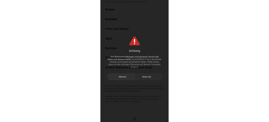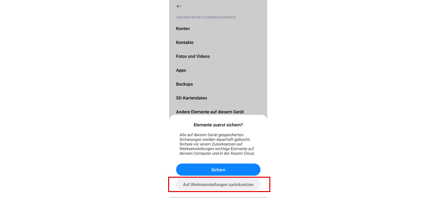 Wähl Auf Werkseinstellungen zurücksetzen. Hinweis: Alle Daten werden aus dem Telefonspeicher gelöscht.