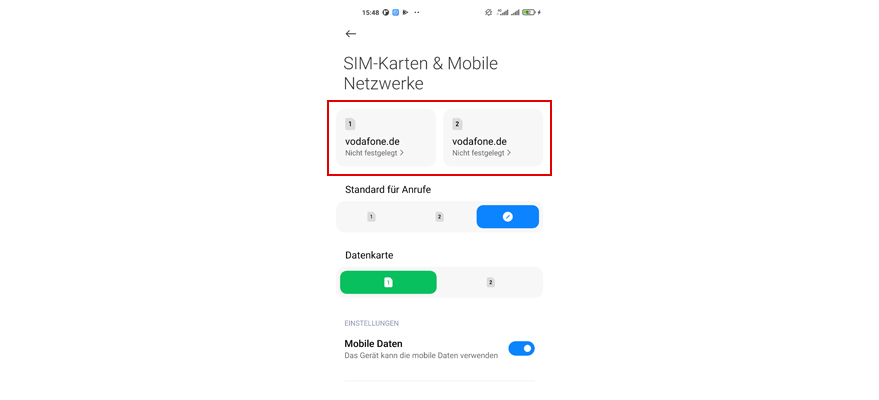 Wähl die gewünschte SIM-Karte aus.