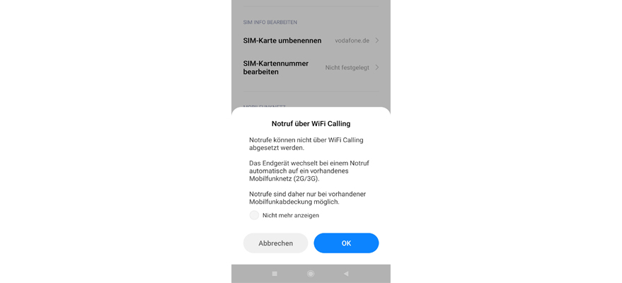 Wähl OK, wenn Du trotzdem Notrufe absetzen möchtest. Wenn nicht, wähl Abbrechen.